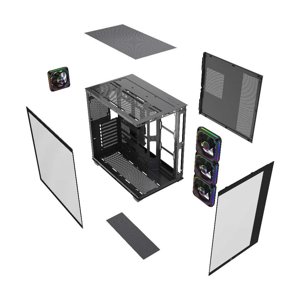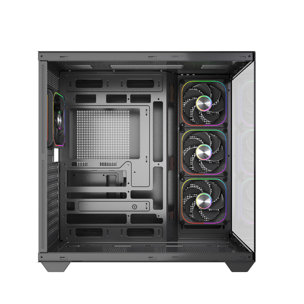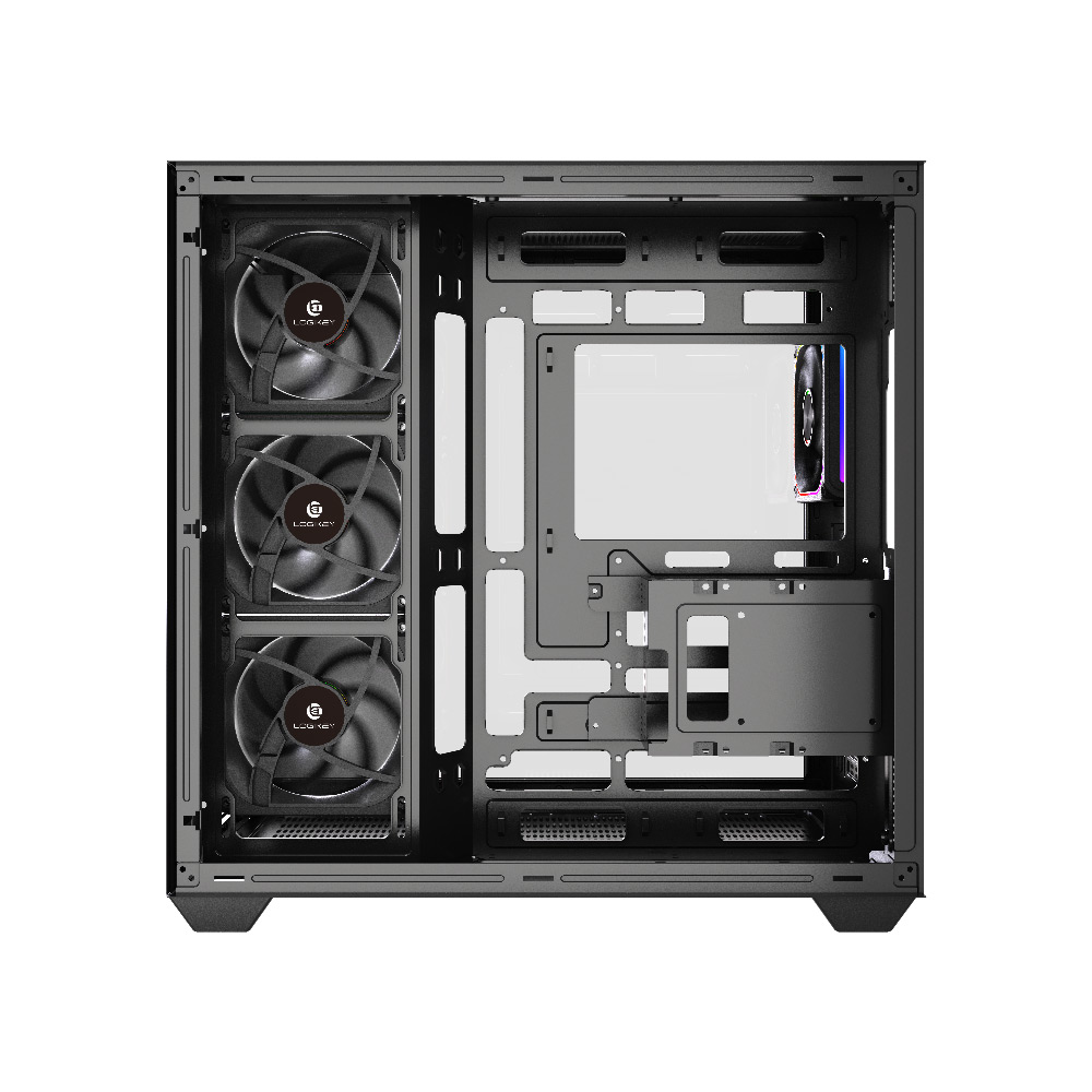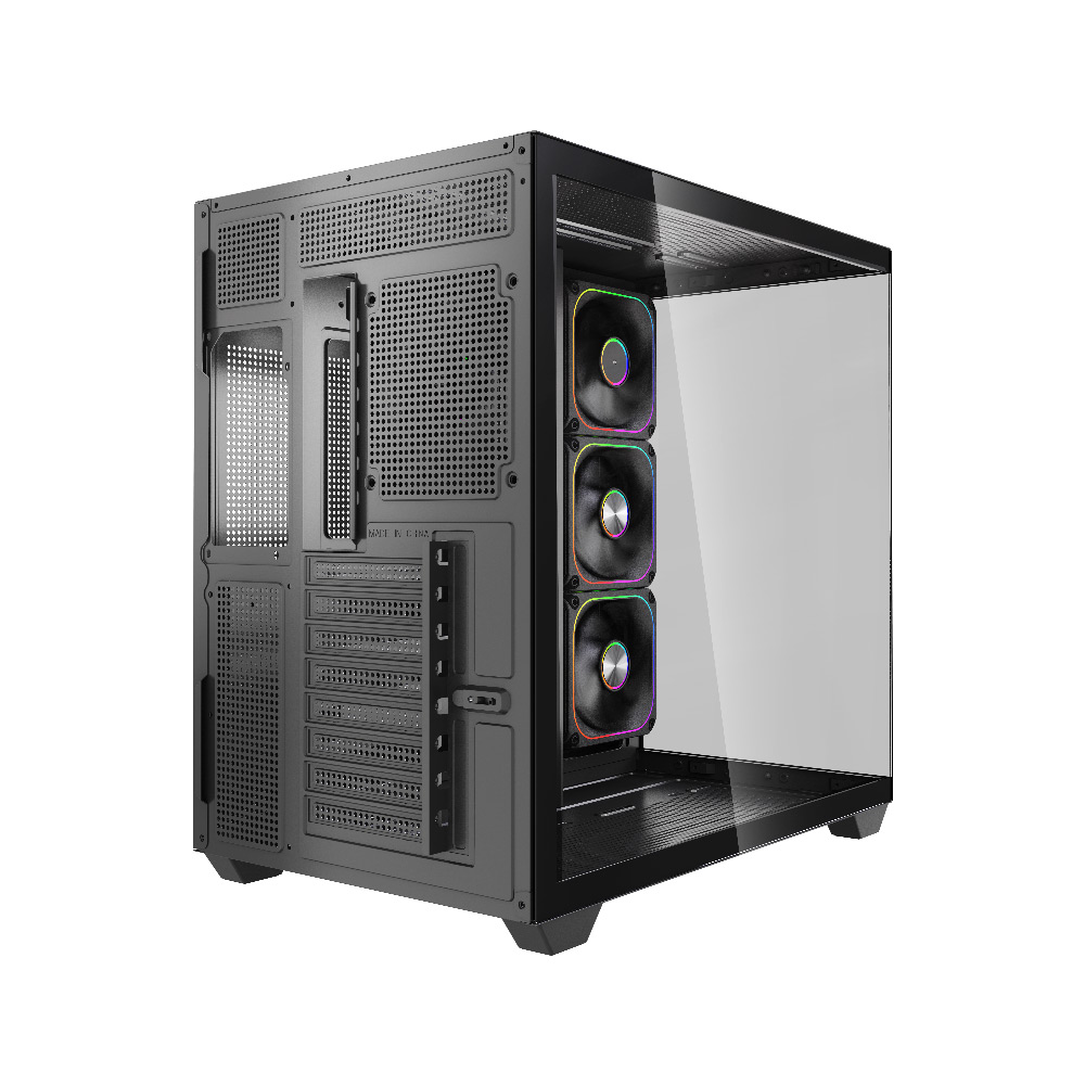 1 x 120mm at the rear (optional), 3 x 120mm / 2 x 140mm at the top (optional), 3 x 120mm on the bottom (optional), 3 x 120mm on the MB tray (optional)